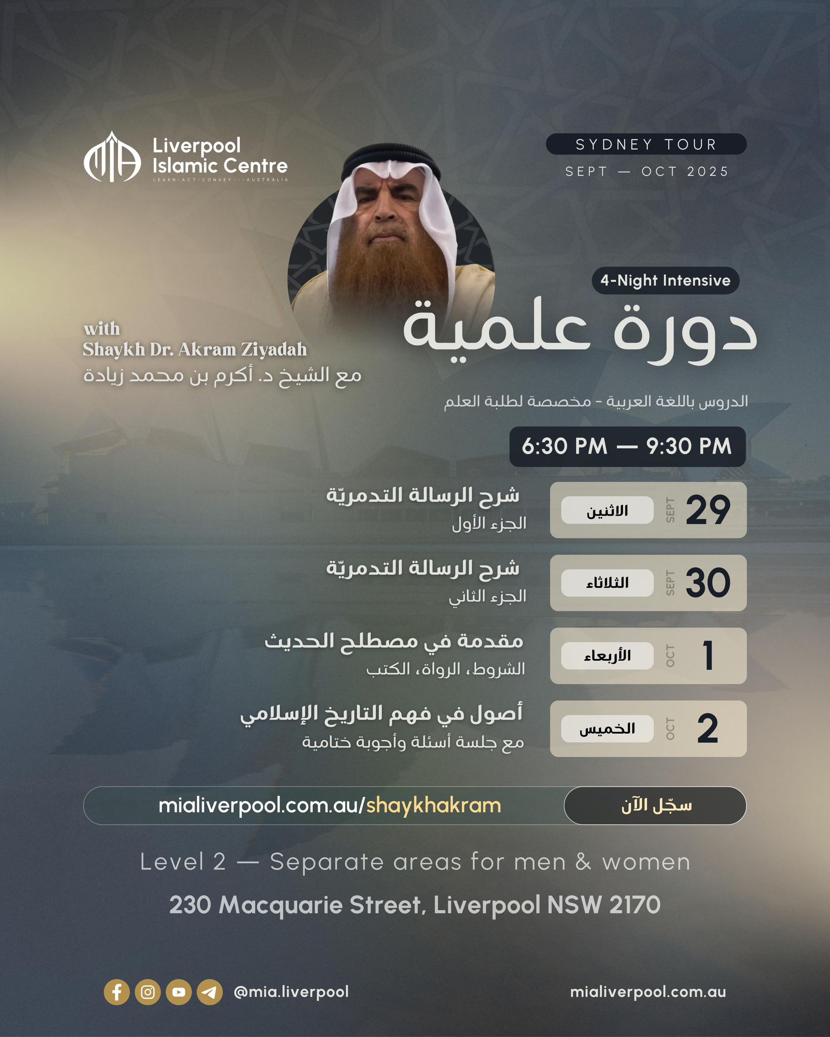 4-Night Arabic Dawrah with Shaykh Dr. Akram Ziyadah Join us for an intensive series covering core Islamic sciences, including At-Tadmuriyyah, Hadith methodology, and Islamic history — tailored for Arabic-speaking students […]